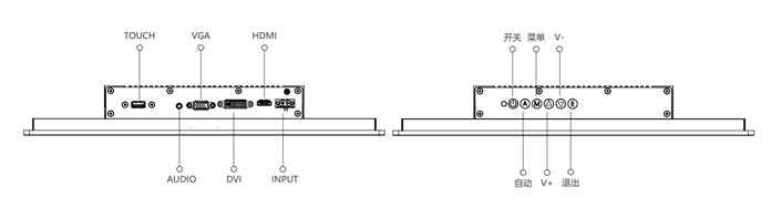 l 1*HDMI, 1*VGA, 1*DVI, 1*USB(interface of touch), 1*On-off button, Customizable serial port touch