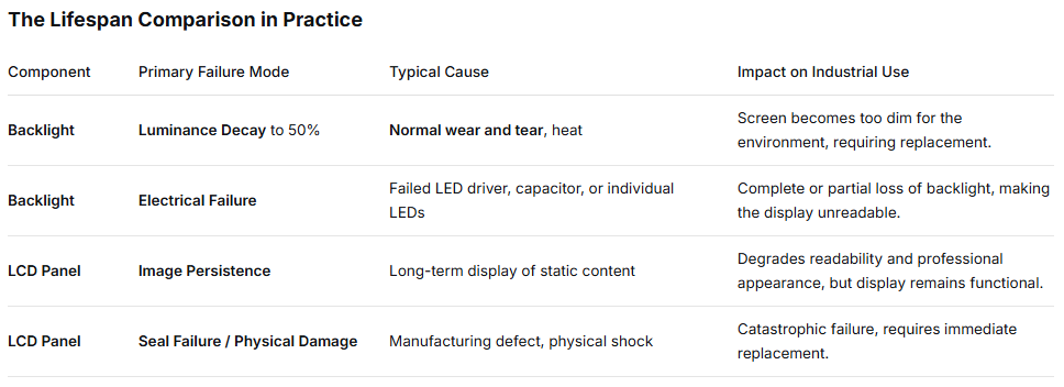Is it the LCD or backlight that determines the lifespan of industrial LCD screens?